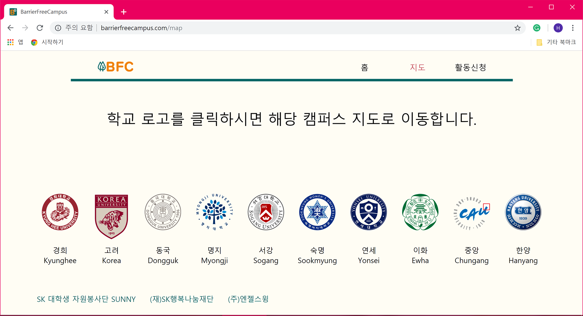 The objective of the project was to create a free campus map web service for disabled students at the universities in Seoul. It was commissioned by the SK Sunny Volunteers Group in cooperation with Angelswing Inc.
