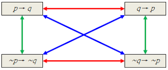* If [p->q] is true, [~q->~p] is always true.